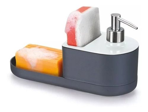 Base antiderrapante na lixeira e porta detergente, bucha e sabão, não escorrega.