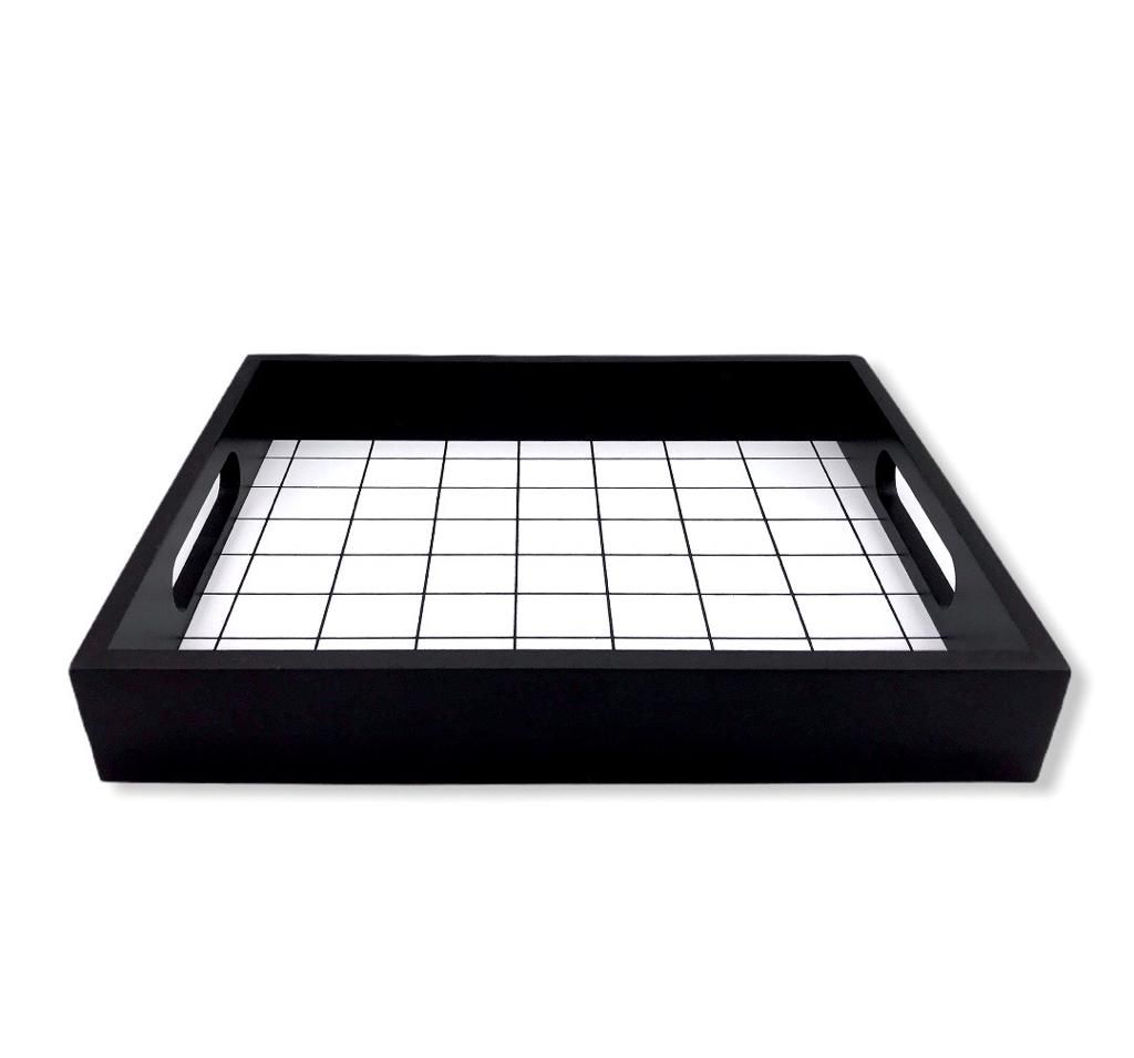 Bandeja Decorativa Retangular Preta De Madeira Com Alça