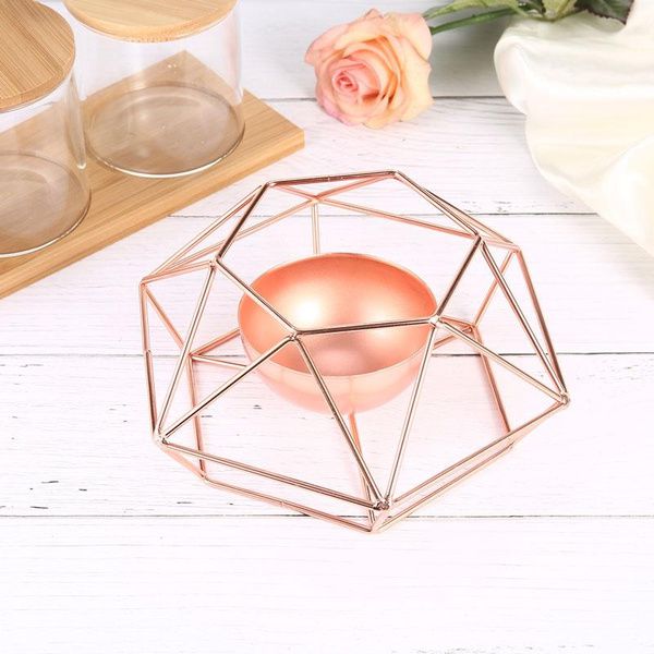 Castiçal Porta Vela Aramado Rose Gold Geométrico Decoração