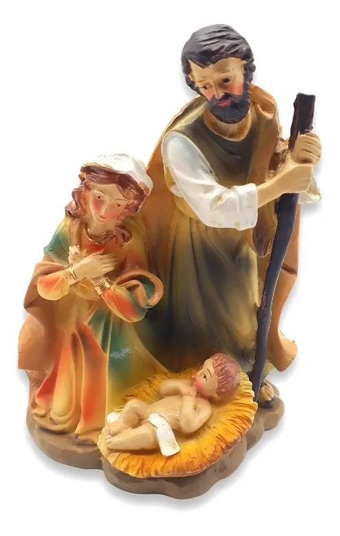 Estátua Resina Escultura Sagrada Família Jesus Na Manjedoura