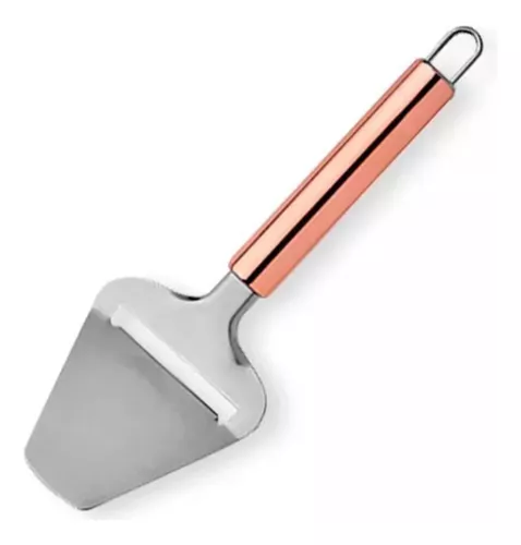 Este fatiador plaina para queijo é feito em aço inox com detalhes na cor cobre, proporcionando facilidade no uso e agregando sofisticação à sua cozinha. A peça combina elegância e praticidade, enriquecendo os momentos à mesa.