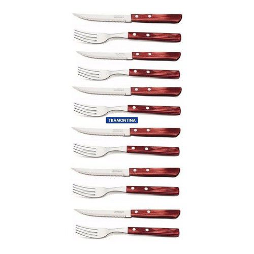 Faqueiro 12 Talheres Polywood Castanho Lâminas Em Aço Inox Cabos De Madeira Tramontina Garfo e Faca