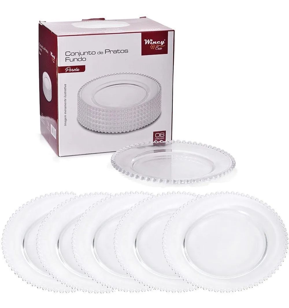 Jogo de prato de vidro para sobremesa perola 6 peças 20cm