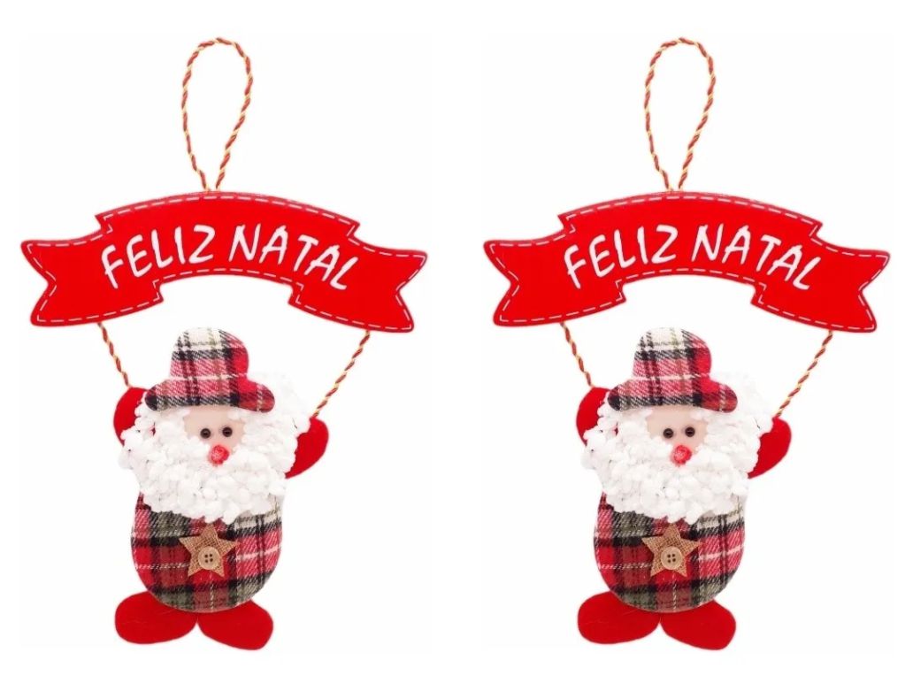 Kit 2 Enfeites De Porta Pendente Papai Noel Em Tecido Xadrez Natal