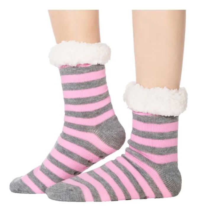 Meia Pantufa Pelúcia Unissex Antiderrapante Confortável Luxo Listradas