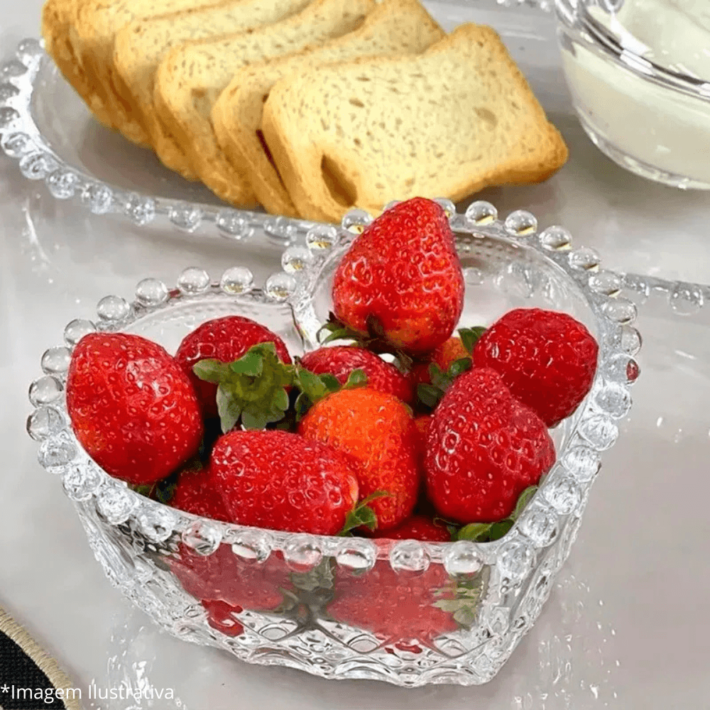 Recomendações de Uso: A Mini Travessa Coração de Vidro Ball Lyor é perfeita para servir aperitivos, sobremesas ou até mesmo decorar a mesa em jantares românticos, festas e eventos especiais. Uma peça charmosa e funcional que traz beleza e praticidade ao dia a dia.