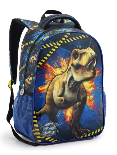 Características: MOCHILA INFANTIL MASCULINA DINO WORLD FEITA COM 70% POLIÉSTER E 30% PVC. O MODELO POSSUI BOLSOS LATERAIS PORTA GARRAFA, PUXADORES PERSONALIZADOS E IDENTIFICADOR NO VERSO. MEDIDAS: 29 X 41 X 12,5 CM. VOLUME: 15L
