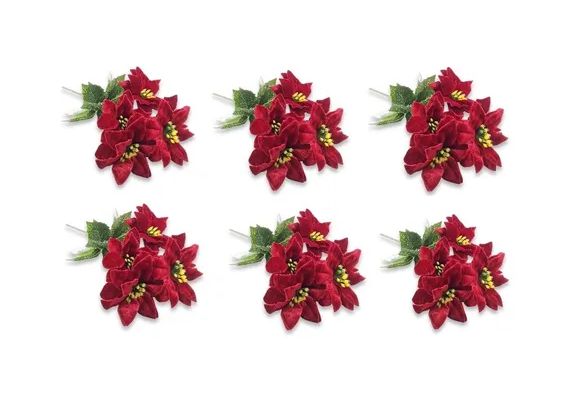 Kit Com 6 Buquês de Flor de Natal Vermelha Bico de Papagaio Aveludada 30 cm