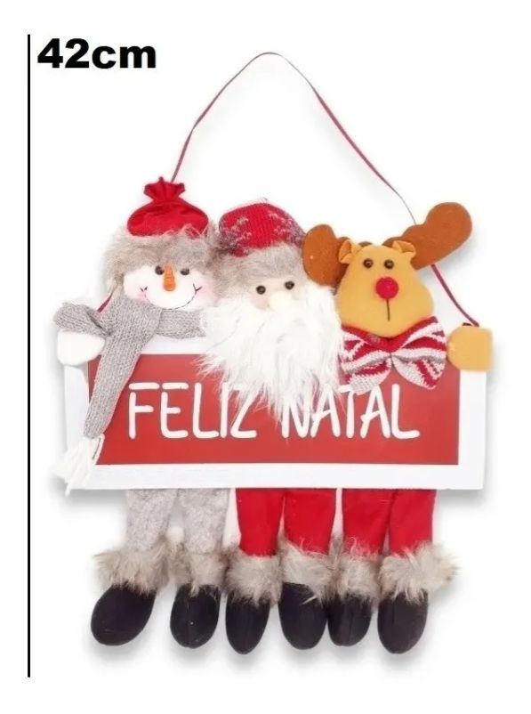 Placa Decorativa de Porta Natal Rena Papai Noel Boneco de Neve