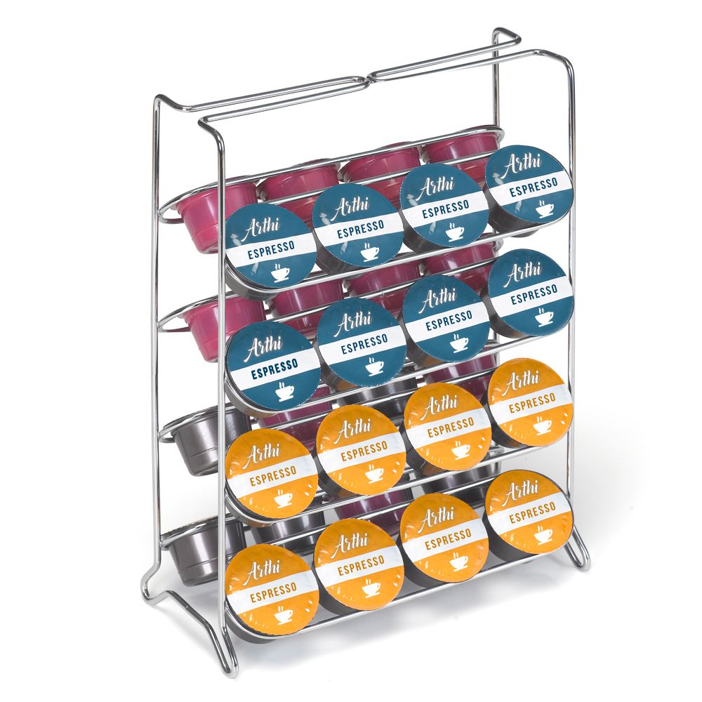 O Porta Cápsulas de Café é produzido em aço cromado, material resistente a corrosão e que agrega ao produto beleza e qualidade.
