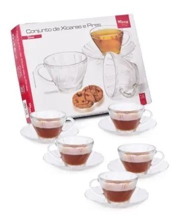 Conjunto De Xicaras E Pires Para Chá 12 Peças 200 Ml Vidro Wind