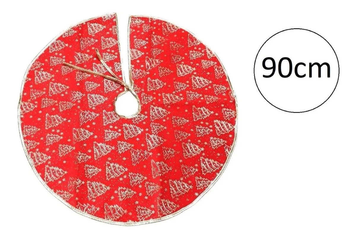 Saia Vermelha Veludo Base Tapete De Árvore De Natal Tecido Enfeite 90 cm
