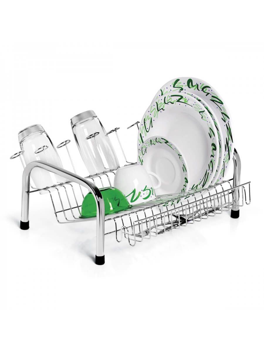 A sua cozinha merece acessórios e produtos práticos para facilitar o dia a dia. Da marca Niquelart, o secador de pratos e copos ou escorredor de pratos e copos é confeccionado em aço cromado, acondicionando perfeitamente a louça. O produto tem capacidade para 16 pratos e 6 copos, e seu tamanho permite deixá-lo em um espaço reduzido em cima da pia.